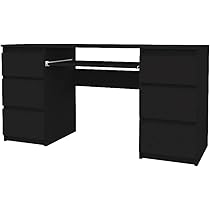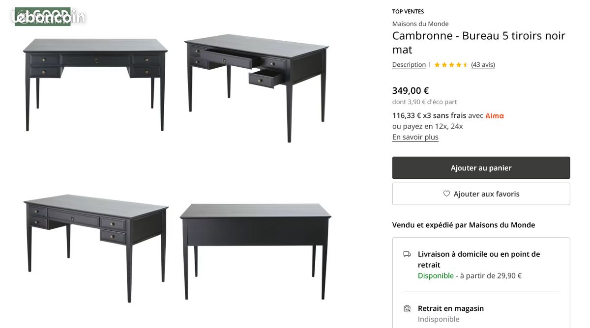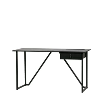 Ce bureau Cambronne allie parfaitement sobriété et élégance ! En finition noir mat avec de jolies poignées en métal laiton qui apportent une touche raffinée. Les 5 tiroirs spacieux permettent de ranger toutes vos affaires de bureau, fournitures, et documents en toute organisation. Plateau et tiroirs en MDF qualité E1 avec finition peinture acrylique résistante. Les pieds en pin massif assurent la stabilité. Dimensions du colis : 81x40x141cm. Parfait avec un fauteuil en lin clair pour créer un contraste élégant. Fabriqué au Vietnam avec du bois FSC responsable. Un bureau intemporel qui convient aussi bien au home office qu'à un espace de travail professionnel.